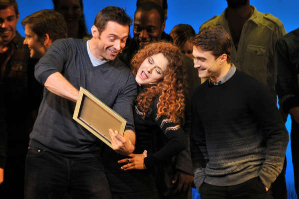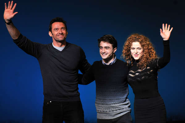 Daniel Radcliffe and fellow stage and screen actors Hugh Jackman and Bernadette Peters hosted the 2011 Gypsy of the Year competition this past Monday and Tuesday, where the Broadway shows that bring in the most money to benefit Broadway Cares/Equity Fights Aids are called out for their contribution. As no surprise, How to Succeed in Business Without Really Trying took the top musical fundraising prize, bringing in $325,935; overall the productions took in $4,895,253. Photos of Jackson and Peters handing Dan the award on Tuesday at the New Amsterdam Theatre in New York City can be found in our galleries.