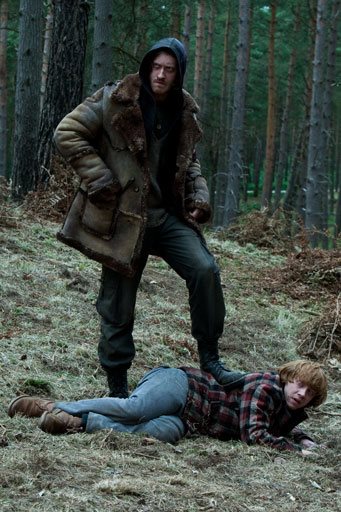 Several new behind-the-scenes photos, movie stills, and studio shots from Harry Potter and the Deathly Hallows: Parts 1 and 2 have been released online, including: Harry holding both Elder and Hawthorn wands at Hogwarts after the end of the battle; Voldemort taunting Neville Longbottom; Harry, Ron, and Hermione at the outskirts of the Burrow after Death Eaters attacked; Hermione, Ron, and Ginny at Bill and Fleur's wedding; a Snatcher having caught Ron; director David Yates with Evanna Lynch; and studio shots of Voldemort, Bellatrix, Draco Malfoy, and Ron Weasley. The dozen shots can be found, thanks to Potterpix on Tumblr, in our galleries.