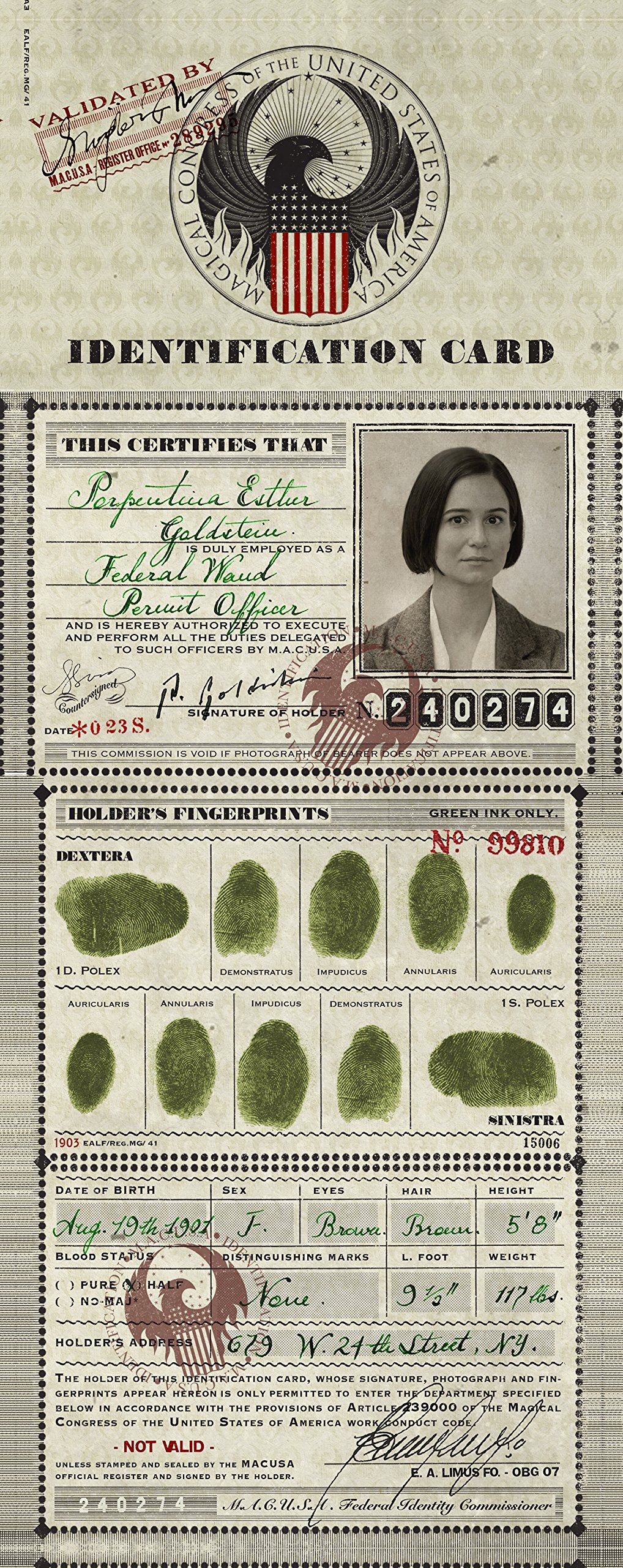 Fantastic Beasts and Where to Find Them, only gave a glimpse of Tina's MACUSA ID card, the full version was released through the new book