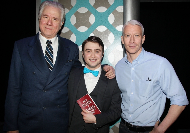 Journalist Anderson Cooper, who narrates the story of the Broadway revival of How to Succeed in Business Without Really Trying, visited the cast on stage of the production this past Saturday, including star Daniel Radcliffe. Photos of Dan with Cooper and his costars from after the show can be found in our galleries.