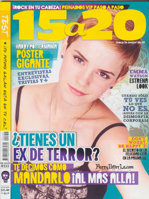 Emma Watson, who will undoubtedly be featured on countless covers of magazines around the world this fall to promote Harry Potter and the Deathly Hallows: Part I, is the face of the November 2010 issue of Mexico's 15a20 magazine. The cover and teaser of interview, which includes a new photo shoot image of Emma, can be found in our galleries. UPDATE: Hi-res scans from the article, featuring yet another new photo of Emma, as well as a promo shot of Ginny from Deathly Hallows: Part I have been sent over by HPLA, and can be found in the galleries.