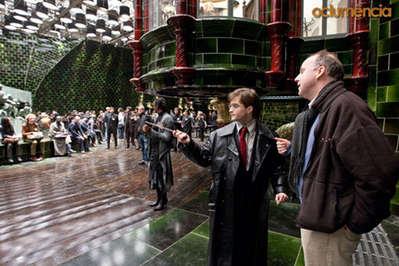 A variety of new movie stills and on-set shots from Harry Potter and the Deathly Hallows: Part I have been released online, including of Harry, Ron, and Hermione at the Burrow, the wedding, and camping, Snape heading to Malfoy Manor, and David Yates directing his actors, including Ralph Fiennes as Voldemort, on various sets. Those can be seen, via Tumblr and Oclumencia, in our galleries.