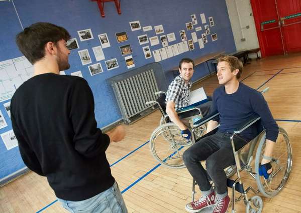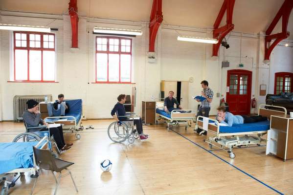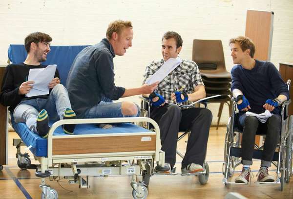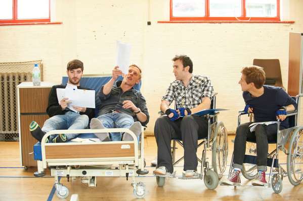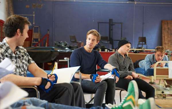 Our Boys costars Cian Barry, Jolyon Coy, Arthur Darvill (Doctor Who), Laurence Fox, and Lewis Reeves are currently in rehearsals nearing the opening night of the London play, set to begin September 26 in the West End. Photos by Geraint Lewis of the