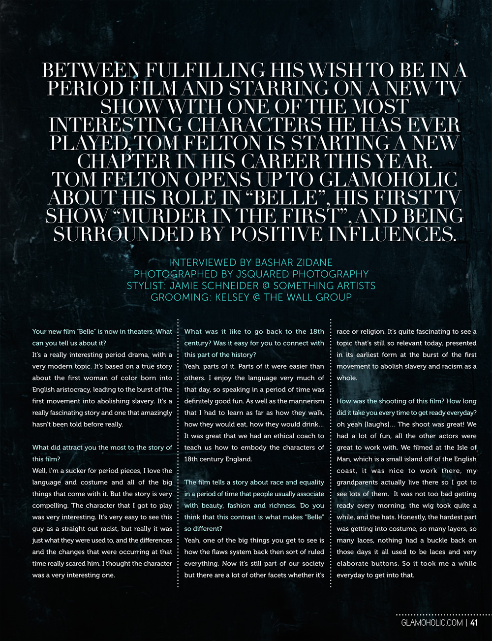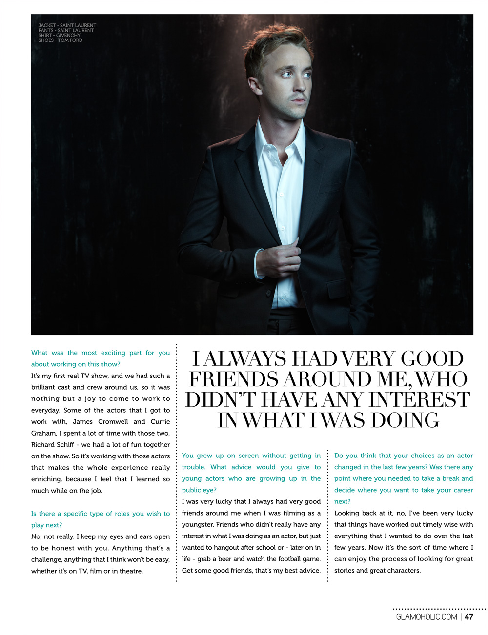 Tom Felton was featured in the latest issue of Glamoholic magazine, where he spoke about his movie