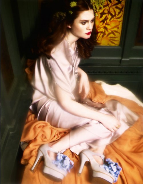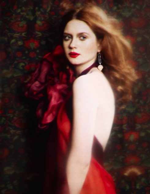 Harry Potter actor Bonnie Wright was featured in the latest issue of the Financial Times' magazine, How to Spend It, in a thematic photo shoot "capturing the languor of Rossetti's paintings." Bonnie was said to embody the "liberated spirit of the Aesthetic Movement in lustrous, flowing gowns." More information on the location - the Victoria and Albert Museum - and theme of the shoot was given by the style editor for the magazine and curator of the museum.