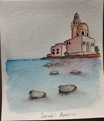 I really just want to stick my face in the water of Saint Vincent and the Grenadines. the colours... blend(? flow? I don't know painting words) together so well. also I don't know if I've mentioned it yet, I've said a lot of things about a lot of things, but the way you sometimes do the sky as like a piece of sky but in a way that successfully suggests an entire sky is really neat. It's very effective in Saint Kitts & Nevis also.