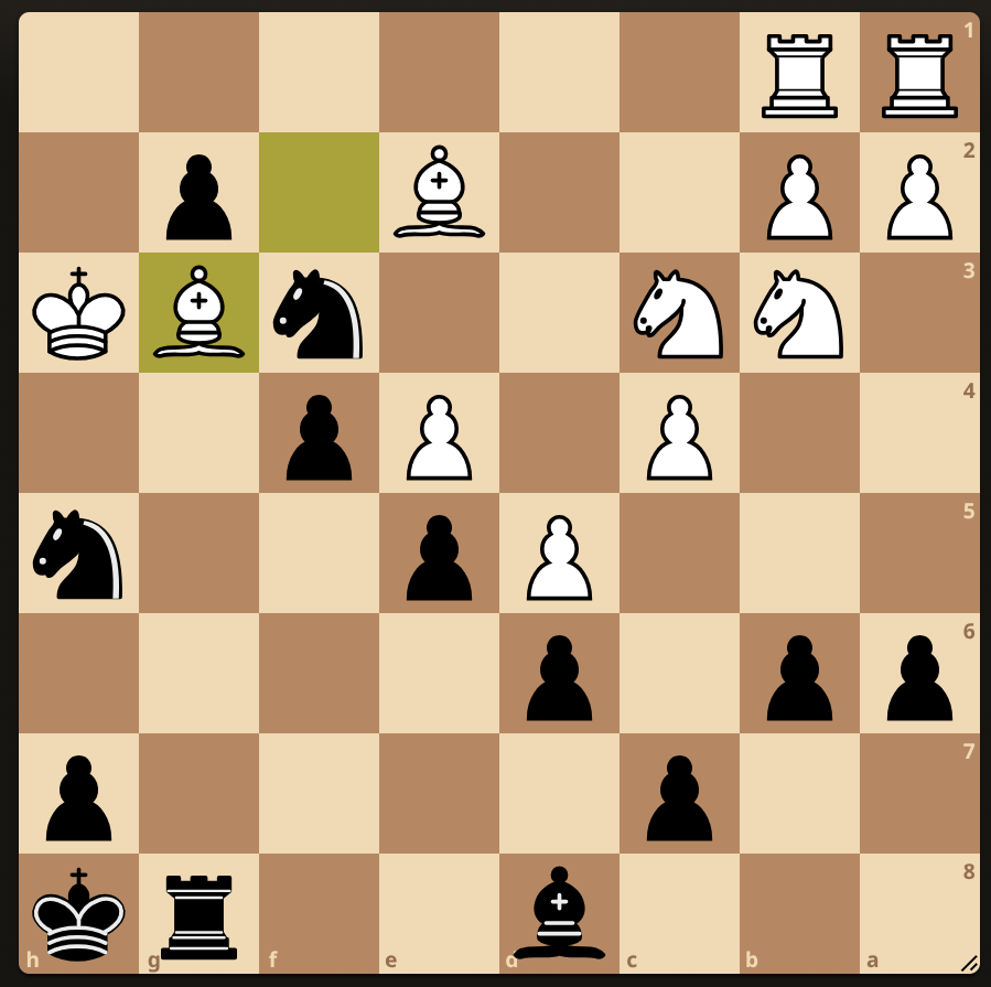 chess board, each piece almost life-size. The pieces have already been moved into various places, as if a game was in the process of being played and was abruptly interrupted. On the other side of the room, past the chess board, there is another door, currently blocked by a white pawn.