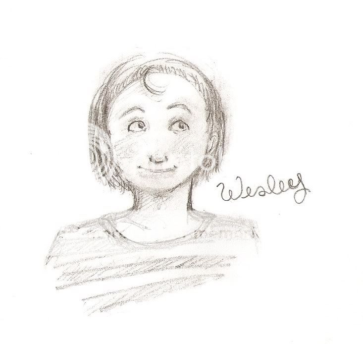 This is my favorite picture of Wesley.  I drew it during Christmas Break, and was in the middle of my very first ever Drawing Class (now I'm in Painting) so I guess I was still in the realalistic mood (we did still lifes. landscapes, and portraits). It's not very realalistic, just because I don't really enjoy drawing that way, but it's more than my usual pictures.