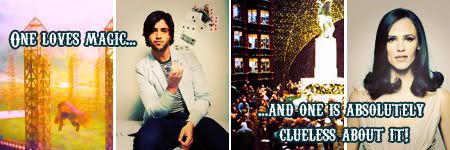 Text?: For Rafe's side: "One loves magic..." For Elaina's side: "...and one is absolutely clueless about it!"