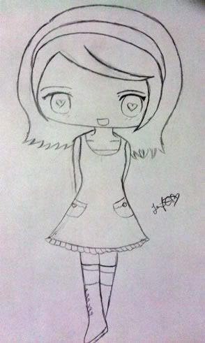 SPOILER!!: quotes H-H-Heee-Hello... ! So it's been a while since I last updated this and I couldn't find the motivation to draw anything on the computer but I made a sketch on paper! :3 And this is a chibi on paper, taken with my phone. So yeah... not my best work and it's in black and white... and shades of grey and I have no intentions of coloring it. :3 Click for a larger image! |