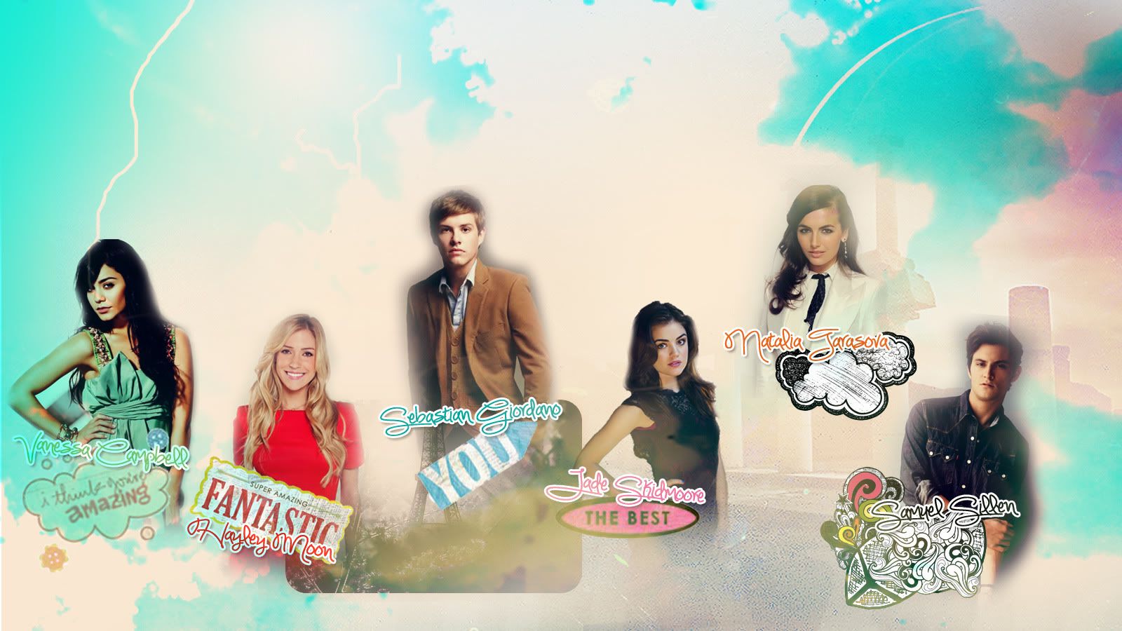 What: Wallpaper please! =D Size: 1600 x 900 Text: #1 Text: Vanessa Campbell #2 Text: Hayley Moon #3 Text: Sebastian Giordano #4 Text: Jade Skidmoore #5 Text: Natalia Tarasova #6 Text: Samuel Sillen Pictures: #1 Picture:Here or Here. #2 Picture:Here or Here. #3 Picture:Here or Here. #4 Picture:Here or Here. #5 Picture:Here or Here. #6 Picture:Here or Here. Other: Nope, just use your awesome Jenn'ness. <3 Thanks!