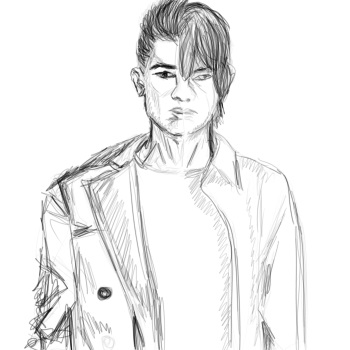The final result gives me L/Light promotional poster vibes for Death Note :whaa: continue to love the aesthetic of your work and how effortless the sketched feel is :lovely: |