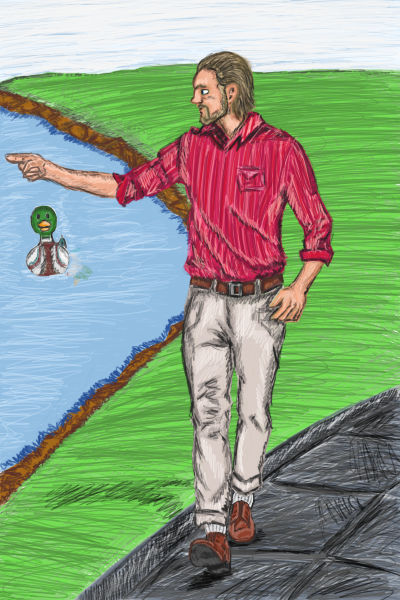 ugh. jay. I'm always in awe of how you can draw figures and portray characters and scenes and these things you envision from the RP and how it plays out. I'd love to be able to do that that duck is adorable but also Aegis himself, the way you captured the human form (that's not an intentional dig at his stint as a mallard, but...) is excellent, as is how you got his clothes all draped and folded so realistically. do you use reference images for this kind of thing and, if so, how closely do you stick to them? when you mentioned the hair in the picture of Moose I honed in on it and I think you absolutely nailed it. also, Wirt in the mirror is a really neat effect. aNd. I've not seen One Piece at all but I don't think I need to in order to marvel at that one... piece. and :mellow: this most recent post is. I. okay. I don't want to repeat myself too much so let me just say 1. human form. 2. clothing. 3. how dare you. having the whole piece in different greens makes for a really nice effect too, I think this is one of my favourites you've done. |