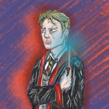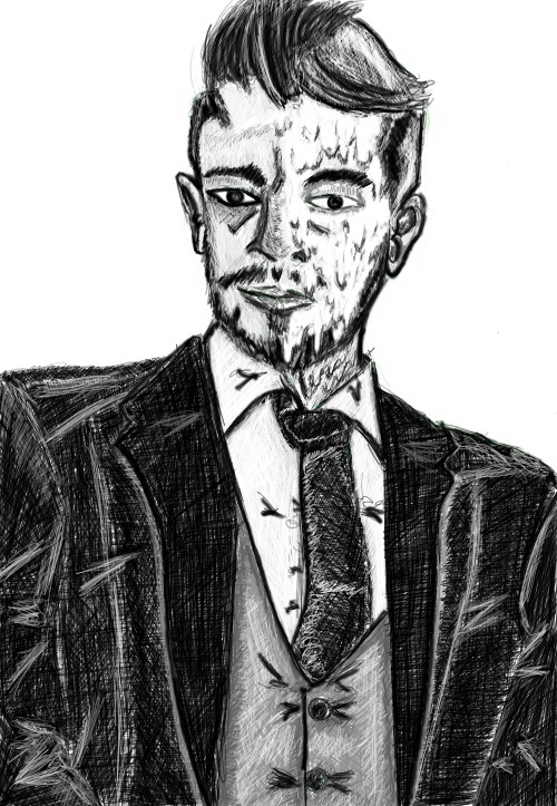 No Longer Trent Now this was a fun one to do. Feels like it was so long ago the at the Start of Term Feast, but I have done what I wanted with Lucien/Trent at the very moment Lucien Rosier dropped his disguise as our Headmaster. Being told it was like his face melted off into another was imagery I couldn't pass up. :moose: These are some of the pieces in progress. Photos!: No Longer Trent Photos!: No Longer Trent If I had to pick between the two I love the Black and White Drawn one over the color. I put lots of work into that one, but I enjoy the finished color one too. |