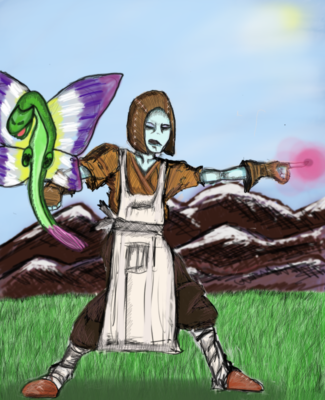 Changling Warlock Redone + the Process I wanted to try and draw this fellow one more time. The one at the bottom of this post. I loved their pose and the little dragon friend they have with them but I wanted to up my background game. in the images below you're gonna see the process and the final product. Photos!: Changling Warlock 2.0 |