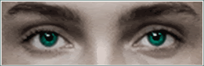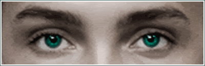 Can you make me a signature with her eyes (both eyes!) and make the eyes blue-green-teal-ish and as glowing and intensively colored as in your avvies and make everything else almost black and white? Cut out the eye- and eyebrow-area for the sig.