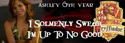 can i have this picture with the words "Ashley 6th year" in little letters and then in bigger letters "I Solemnly(sp?) swear im up to no good." also can it have some sort of red background symblizing gryffindor?