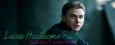 Originally Posted by FearlessLeader19  , Tarah! Sooo, yeah. I'm here with a request obviously xD What I want: Siggie, avvie In size: 450 x 150 pixels for siggie; Standard SS size for avvie. With this picture(s)/faceclaim/model: With this text: Lucas Hawthorne Riley, Quidditch Division Head Anything else: Thanks!  Hey, sorry these took sooo long! I kept second-and-third guessing which direction to go with these graphics (especially the font!), but I'm happy with the way they finally turned out I hope you like them, too!   Queue is OPEN
