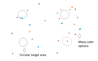 "Beginner" option is a continuation of the opening activity, using the colored marbles to practice aiming into the circle. Some ways to make this more difficult could be arranging other colors of marbles in the way, or trying to get into a smaller portion of the circle.