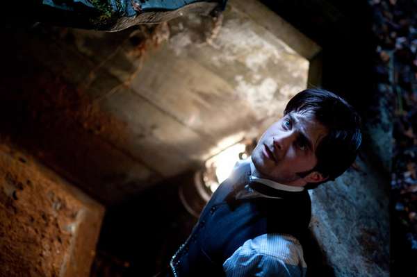 New photos and a clip of Dan as Arthur Kipps from the upcoming supernatural thriller, out this February, have been released by CBS Films and IGN. The minute-long clip shows a terrified Kipps, in Eel Marsh House's nursery, watching the lights go out automatically.