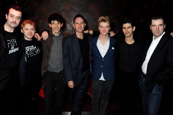 Mojo costars at the production's press night on Thursday, including Daniel Mays, Colin Morgan, Tom Rhys Harries, Ben Whishaw and Brendan Coyle at the Cafe de Paris in London. Photos of the Harry Potter actor can be found here; several early reviews are giving the 1950s-era mob play great reviews.