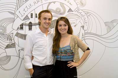 Actor Tom Felton attended the charity art exhibit for his friend Lizzie Mary Cullen in London yesterday. High-resolution photos of Tom with Lizzie have been sent to SnitchSeeker by Lizzie herself, and can be found in our galleries.