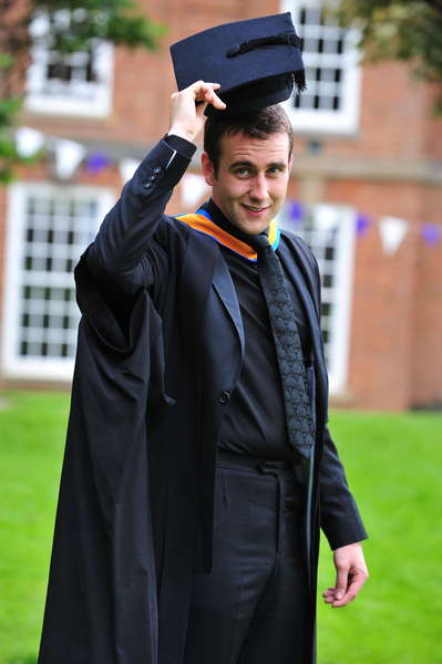 To say this award came as a bit of a shock is quite the understatement. I initially didn’t know where to begin with this speech. Being only 23, I’ve been trying to think of something to say that wouldn’t come across as necessarily condescending. I know how much you all put into these degrees. My girlfriend’s sat in the front row, and actually graduated from her four-year classes this morning, and you wouldn’t have thought much of her face a few days ago when I told her I’d be graduating on the same day. (audience laughter).