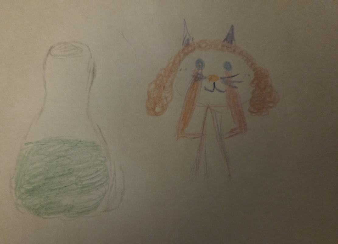 Hey now, don't beat yourself up and call an honest effort 'terrible'! There is something charming about an elevated stick figure like your Kitty!Hermione I think it was the right choice adding her to your potion flask