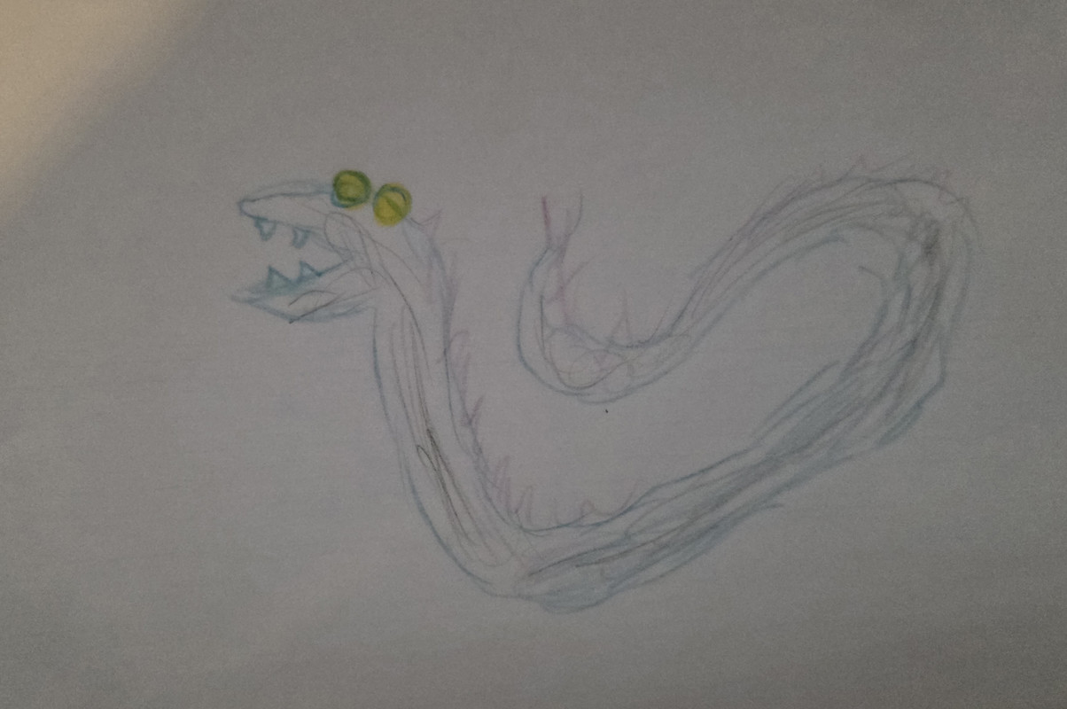 Kind of looks similar to a snake, but then I added the fangs and yellow eyes to hopefully make it more distinguishable. This one was fun to create.
