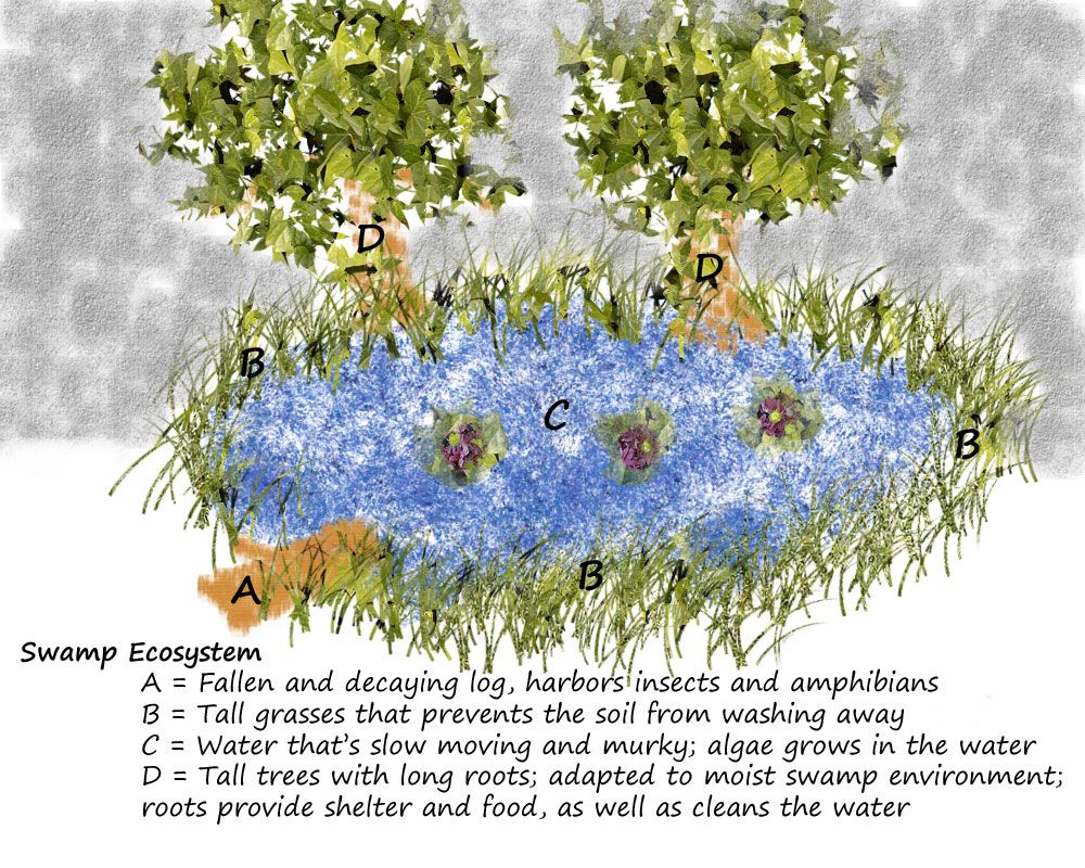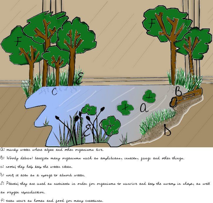Instead she went for a more appropriate, academic response, "Well Professor, I think that the function of a swamp is to be the home to the creatures whose niche coincide in it." The organisms in there were very specific. They had to be there to survive.