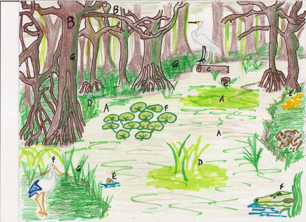 F – Provides a habitat for many creatures like the stork, egret, toad and alligator.