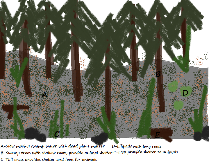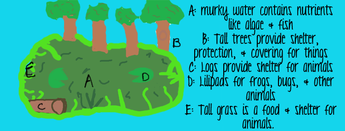 Oh...the function of swamps? Ella thought about this for a moment before raising her hand. "Professor, swamps serve as homes to many different species of animals so if swamps were to be erm...filled in or wiped out...the animals would be forced out as well."