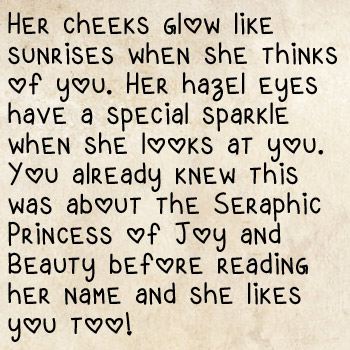 No. No no no. You had it all wrong, Mr. Faithful House Elf to the Seraphic Princess of Joy and Beauty! It was totally not obvious and she had been very very very stealthy!
