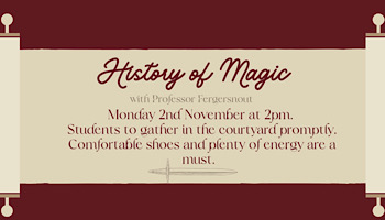 | HeadGirlMC | Treddie & Trixiver <3 | Copy Girl | Katie's Ickle Minion | I love YOU more  { OOC: } What?: History of Magic Lesson When?: Thursday 21st September est. 10am BST. Who?: Open to all students Where?: History of Magic subforum (students have been asked to gather in the courtyard) Other: Students are encouraged to wear comfortable shoes (e.g. Trainers)